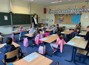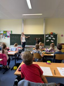 Pünktlich zum Ende der ersten Hofpause standen wir wieder im Foyer der Grundschule und bestaunten die Menge an Schülern, die an uns vorbei ins Schulgebäude stürmten. Und auch hier sahen wir viele bekannte Gesichter, die uns freudig begrüßten.