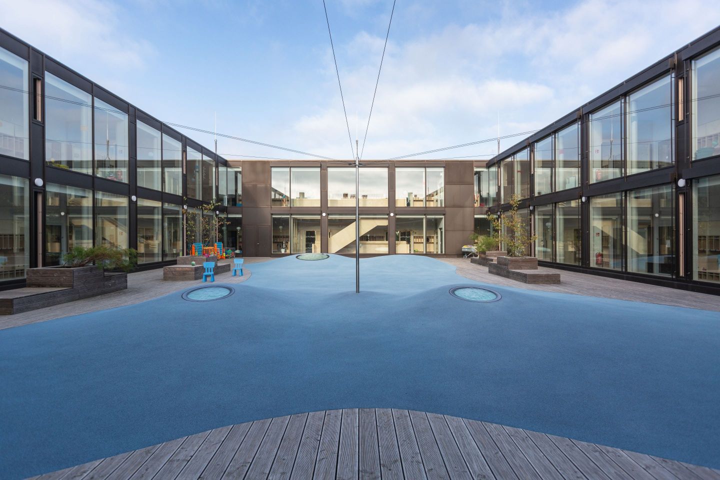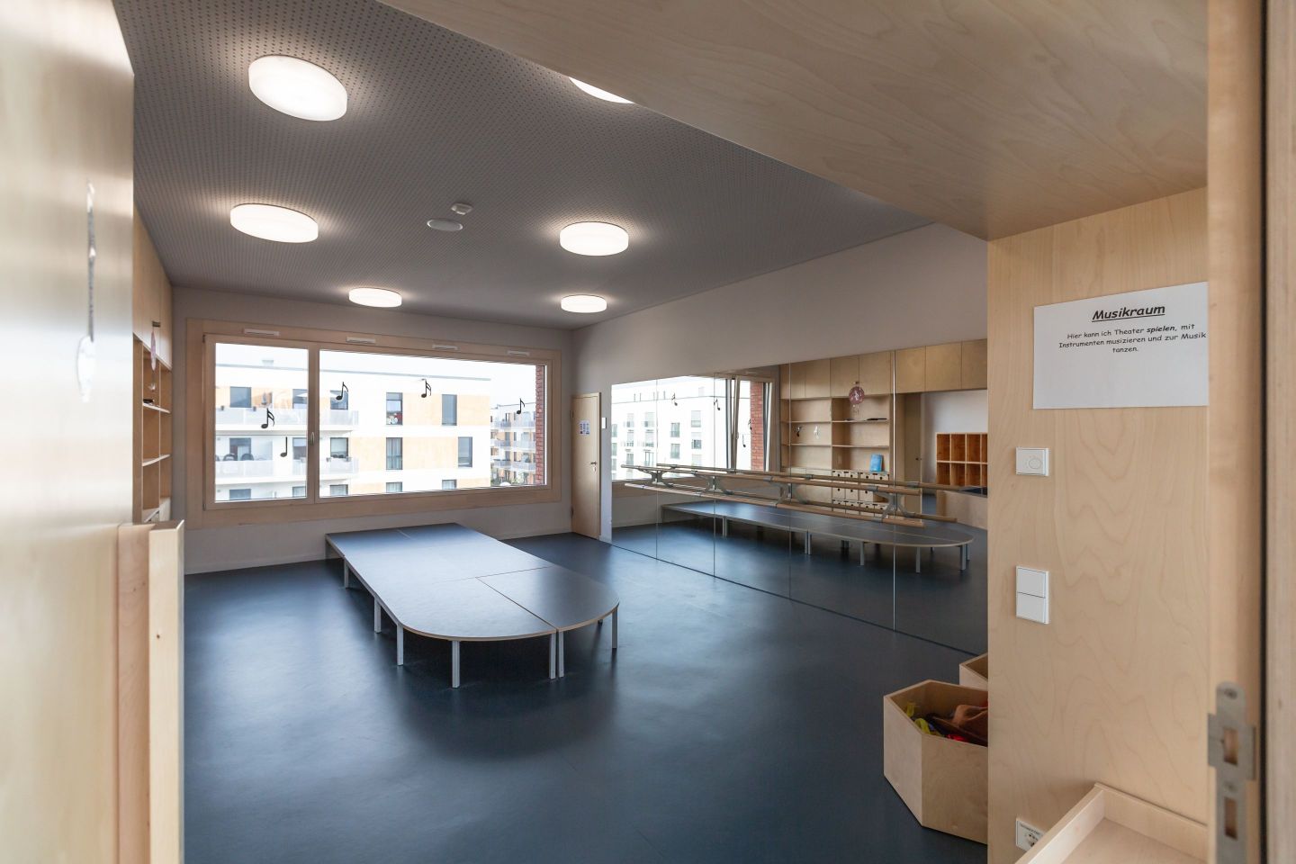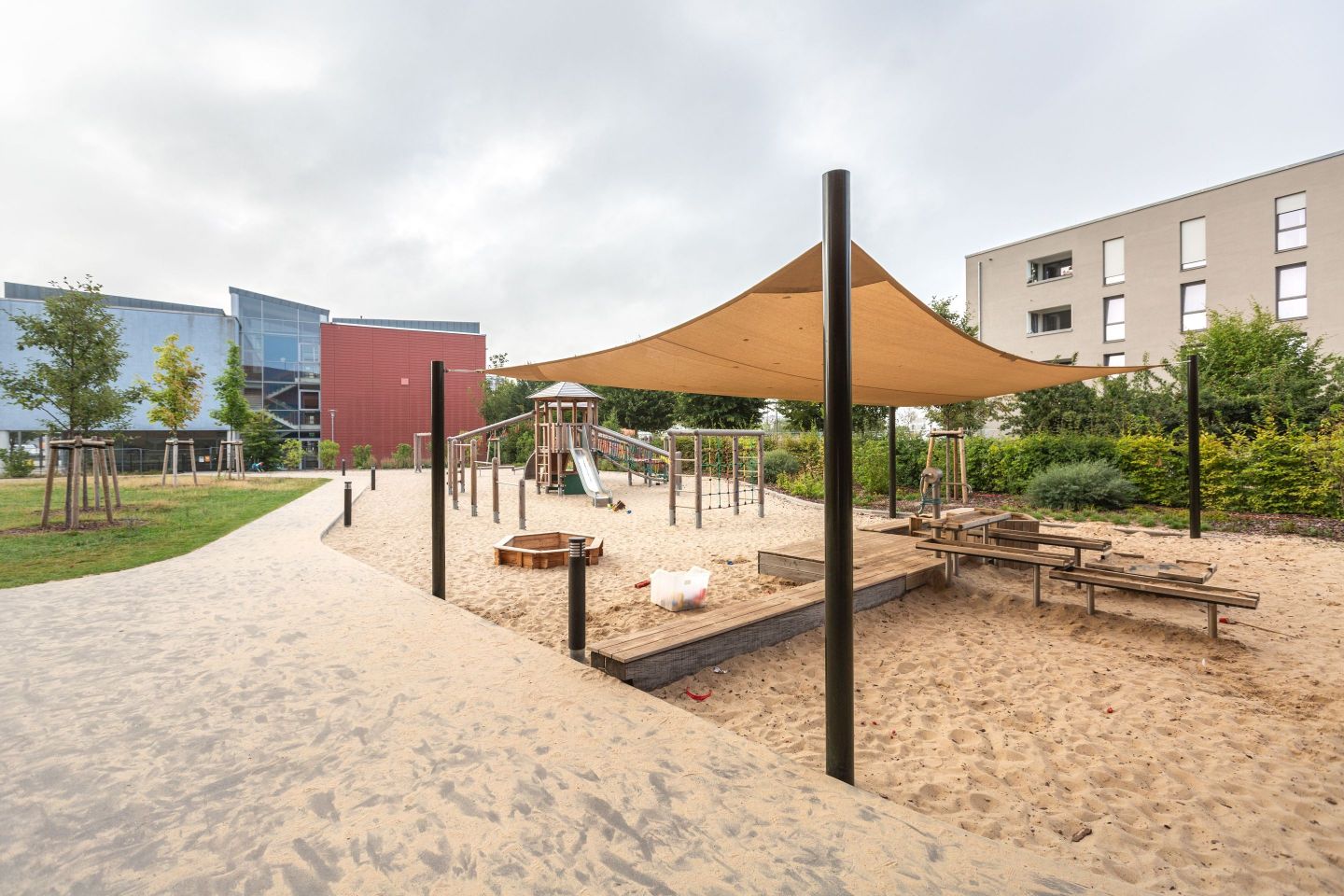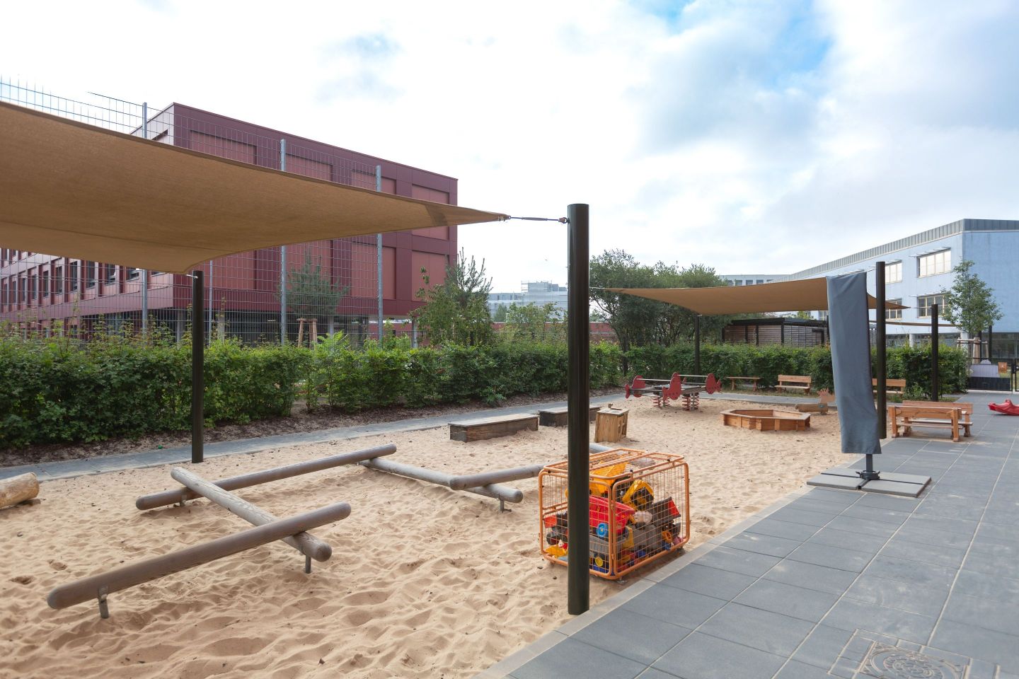 Die dreigeschossige Kindertagesstätte „Bienenschwarm“ wurde im November 2020 mit einer Gesamtkapazität von 524 Plätzen in Betrieb genommen. Sie integriert die Bereiche Krippe (U3, Kinder ab 1 Jahr), Kindergarten (Ü3) und Hort. Das besondere und bislang einmalige dieser Kindertagesstätte sind eine große Mensa mit 192 Plätzen, in der alle Kindergarten- und Hort-/Schulkinder ihre Mahlzeiten einnehmen und zweifellos der Dachterrassenspielplatz.
