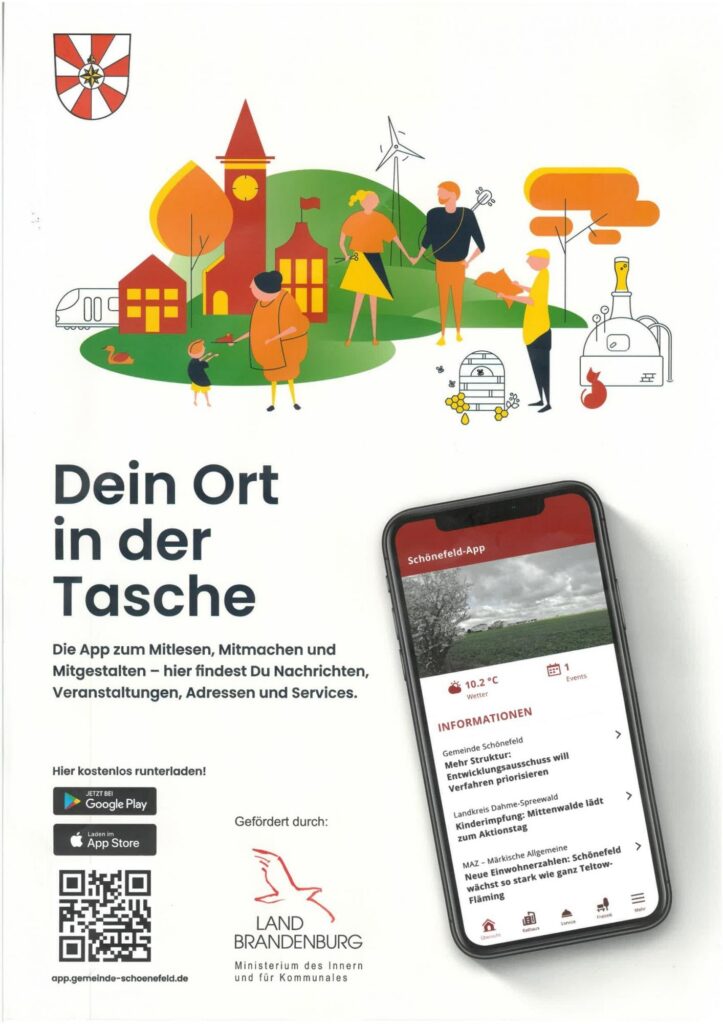 Für die meisten Nutzer*innen der Schönefeld App steht die schnelle Information über die aktuelle Nachrichtenlage und das Geschehen in der Gemeinde im Fokus des Interesses. Das ergab eine erste Auswertung der im Januar gestarteten Umfrage zur Gemeinde-App, mit der die Gemeinde Schönefeld im April 2022 an den Start gegangen war.