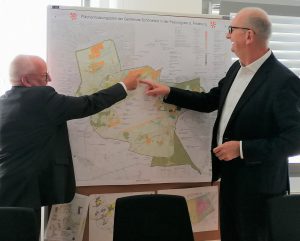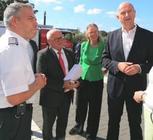 Bei seinem rund zweistündigen Besuch streifte der Sozialdemokrat zudem das mit rund 150 Hektar größte und bedeutendste Entwicklungsgebiet der Gemeinde, das sich entlang der Hans-Grade-Allee erstreckt und in dem in den kommenden Jahren neben einem neuen Gymnasium, neue Wohnquartiere, Kitas, weitere Schulen und Freizeiteinrichtungen entstehen sollen. Die Tour endete schließlich an der Schönefelder Feuerwehr, wo sich Woidke über die geplante und notwendige Transformation der Freiwilligen Feuerwehr in eine Berufsfeuerwehr informierte.