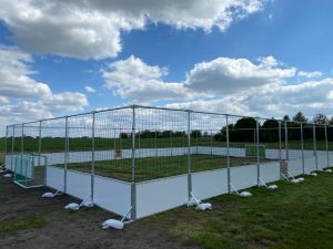 Die Gemeinde Schönefeld freut sich über einen weiteren Soccer Court. Dieser wurde auf Initiative der Jugendkoordinatorin der Gemeinde im letzten Jahr bestellt und nun von den Kollegen vom Bauhof im Ortsteil Großziethen aufgebaut.