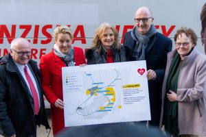 Geschlossen für den U7-Ausbau: Auf Initiative der Berliner SPD trafen sich am vergangenen Freitag Brandenburgs Ministerpräsident Dietmar Woidke, Berlins Regierende Bürgermeisterin Franziska Giffey als auch Schönefelds Bürgermeister Christian Hentschel zu einer gemeinsamen Tour entlang der geplanten Trasse. Nach den bisherigen Plänen soll diese den Berliner U-Bahnhof der U7 in Rudow mit dem Flughafen BER verbinden. Dabei wird sie das Entwicklungsgebiet im Schönefelder Norden queren, in dem in den kommenden Jahren neue Wohnungen für bis zu 10.000 neue Einwohner*innen entstehen sollen. Allein aus diesem Grund sei die U-Bahn für die Gemeinde ein großer Gewinn. Sie würde jedoch nicht nur viele neue Quartiere optimal erschließen. „Unter Berücksichtigung der avisierten Passagierzahlen des BER und der erheblichen Zahl an neuen Arbeitsplätzen im Flughafenumfeld ist die Anbindung an das Berliner U-Bahn-Netz aus Sicht der Gemeinde Schönefeld auch zwingend erforderlich“, betonte der Bürgermeister.