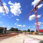 Hinter hohen Sandbergen, fast unbemerkt von Passanten und vorbeirauschenden Autos entwickelt sich auf der Ackerfläche an der Schönefelder Hans-Grade-Allee in rasantem Tempo ein neues Bauprojekt. Ein Teil des zukünftigen Gebäudes steht bereits, Kräne, Bagger und Baumaterial deuten wie ein weiteres Fundament und eine tiefe Baugrube auf die fortschreitende Bautätigkeit.