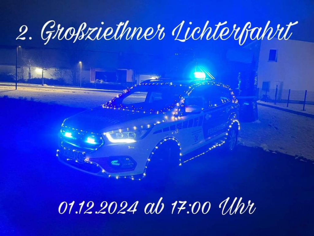 Am 01.12.2024 ab 17:00 Uhr werden die Fahrzeuge der Wehr mit Lichterketten geschmückt durch Großziethen fahren. Bewohner*innen und Gäste sind herzlich eingeladen, am Straßenrand die Fahrzeuge bei ihrer Fahrt durch den Ort zu begleiten.