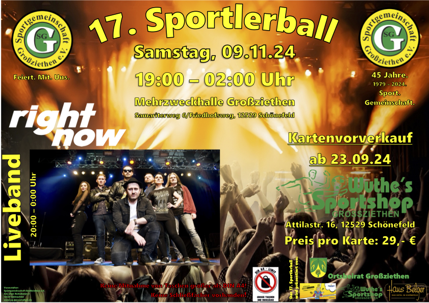 Die SG Großziethen lädt zum 17. Sportlerball in die Mehrzweckhalle nach Großziethen.
